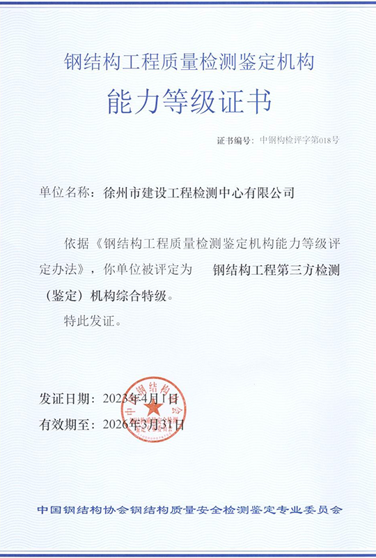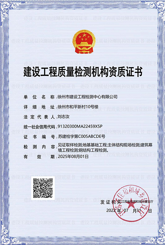徐州市建設工程檢測中心有限公司(以下簡稱徐建檢測公司)是徐州市產(chǎn)城發(fā)展集團有限公司(以下簡稱產(chǎn)城集團)的全資子公司。徐建檢測公司前身為徐州市建設工程檢測中心,2018年事轉企改制,2020年4月,完成轉企改制資產(chǎn)劃轉工作。 徐建檢測公司是集檢測、檢驗、鑒定、咨詢等技術服務為一體、具有獨立法人資質的綜合性第三方服務機構。公司主要從事建設工程領域相關工程質量檢測及技術咨詢服務,業(yè)務覆蓋地基基礎、建筑材料、建筑結構、鋼結構工程、市政工程、綠色建筑節(jié)能工程、建筑安全與施工設備、建筑防水、建筑水電、裝飾裝修、建筑物防雷、室內環(huán)境、房屋安全鑒定、城市軌道交通工程等專業(yè)領域。......